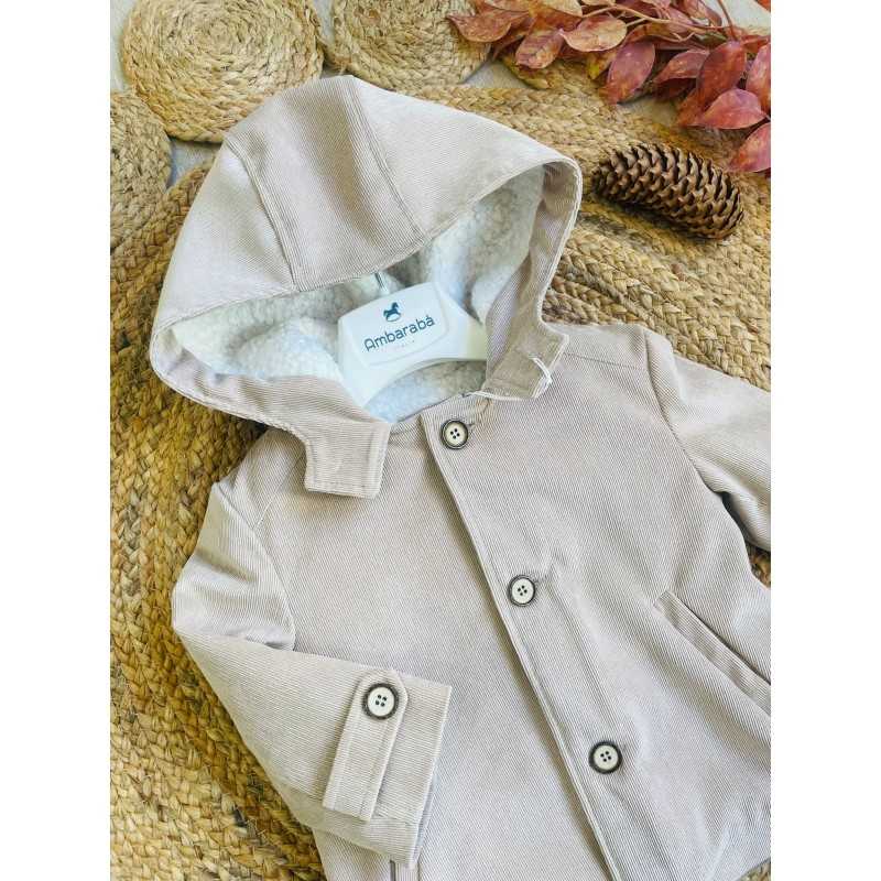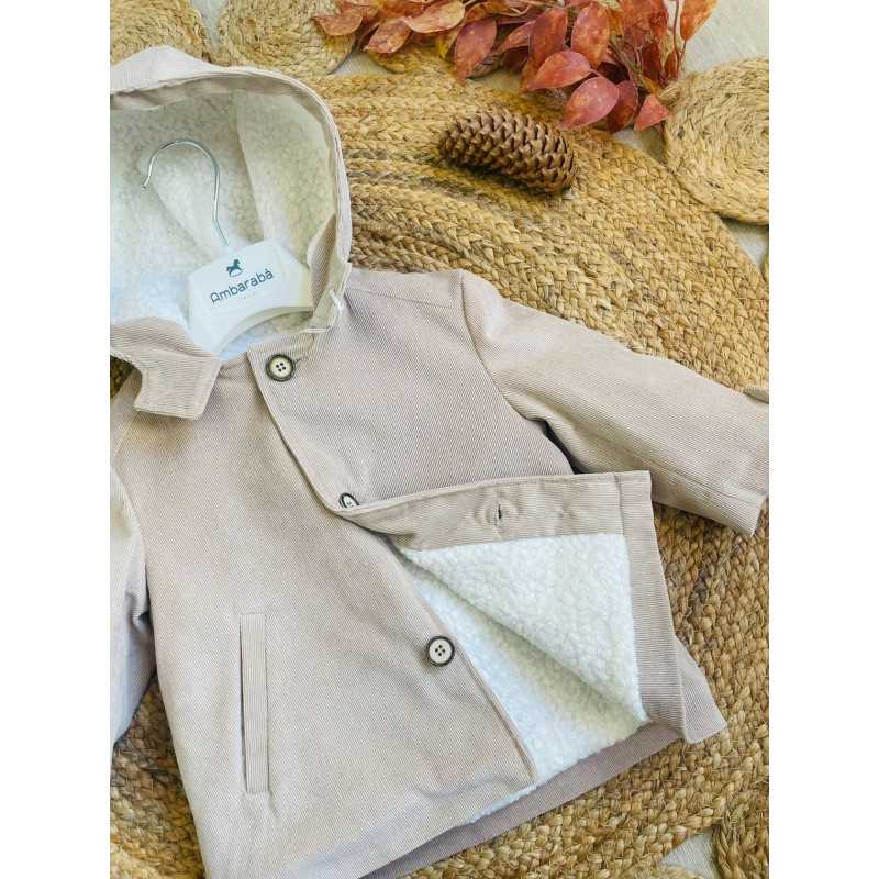 Scopri l'eleganza senza tempo del nostro cappottino bambino in velluto a costine, un capo che unisce stile e funzionalità. Realizzato in velluto di alta qualità, questo cappottino è rivestito internamente con morbida sherpa, offrendo un comfort insuperabile anche durante le giornate più fredde. Il design con cappuccio aggiunge un ulteriore strato di protezione contro il vento e il freddo, mentre le tasche a filo offrono praticità senza compromettere l'estetica. I bottoncini effetto legno aggiungono un tocco di classe, rendendo questo cappottino ideale non solo per l'uso quotidiano ma anche per occasioni speciali come cerimonie e feste invernali.
