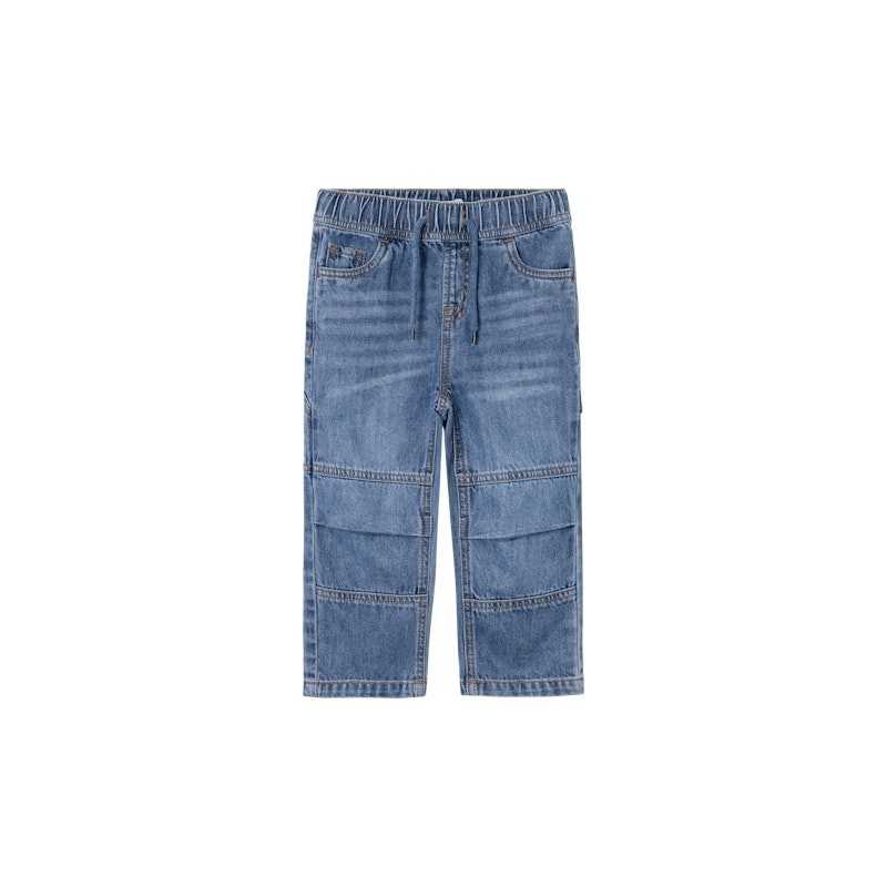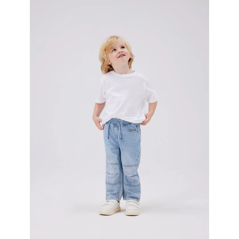 Scopri i nostri jeans loose fit per bambino: realizzati con un lavaggio scuro e risvolto, offrono uno stile casual e comfort grazie al tessuto morbido e al cinto elastico regolabile, perfetti per ogni occasione.