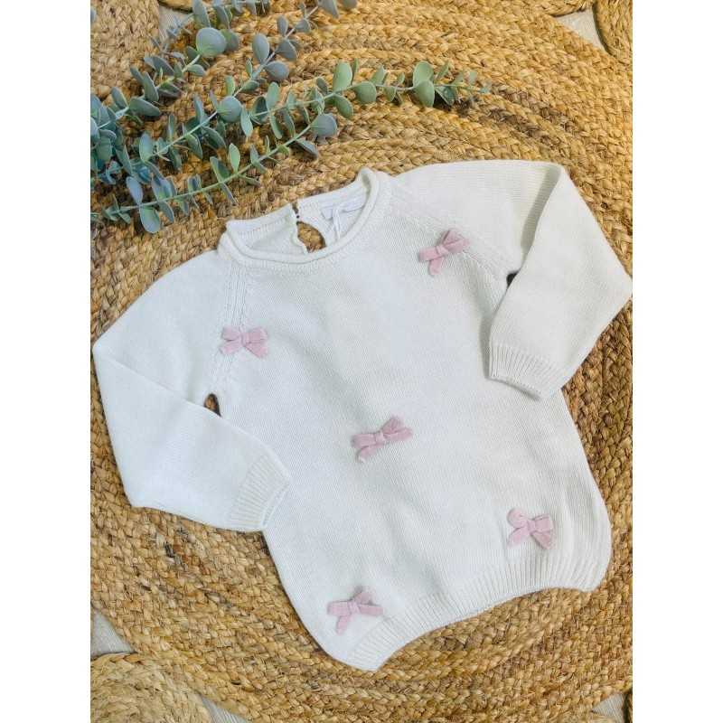 Scopri il maglioncino in misto lana per bambina, impreziosito da deliziosi fiocchetti rosa. Realizzato con materiali di qualità, offre comfort e stile per ogni occasione, mantenendo la tua piccola calda e alla moda.