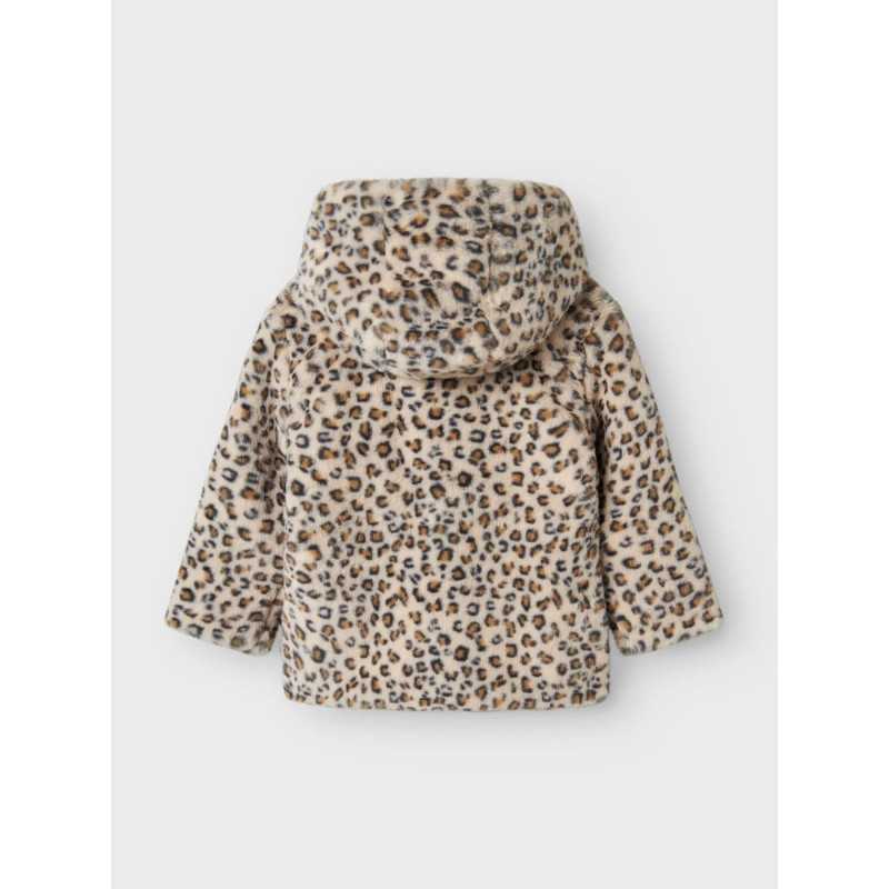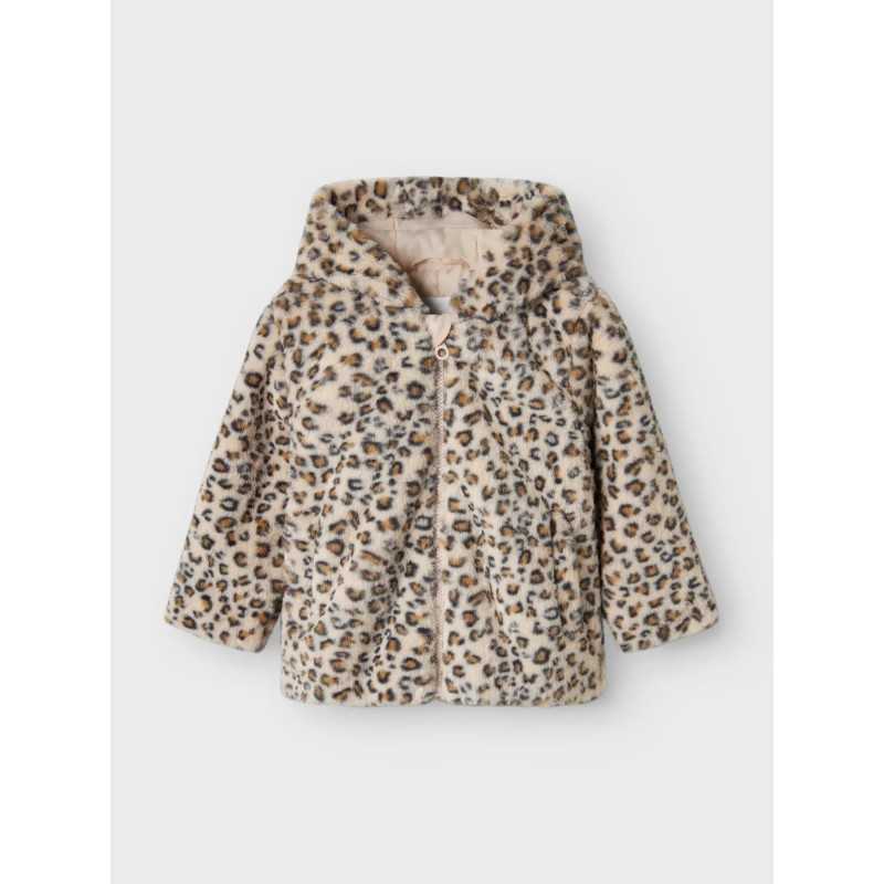Ecopelliccia da bambina, fantasia animalier con full zip, cappuccio e tasche laterali.