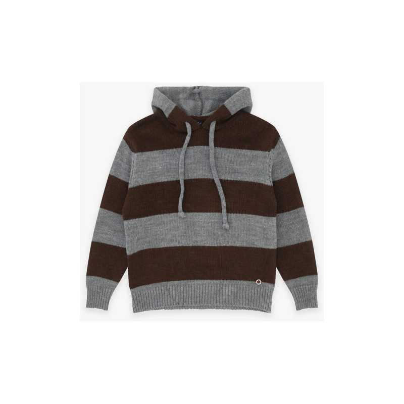 Scopri il pullover da bambino con cappuccio, perfetto per i piccoli avventurieri dai 4 ai 12 anni. Realizzato in maglia, offre comfort e stile grazie al design a fasce colorate, ideale per autunno e inverno.