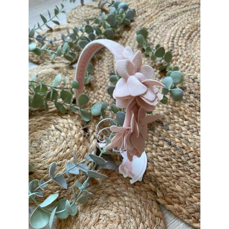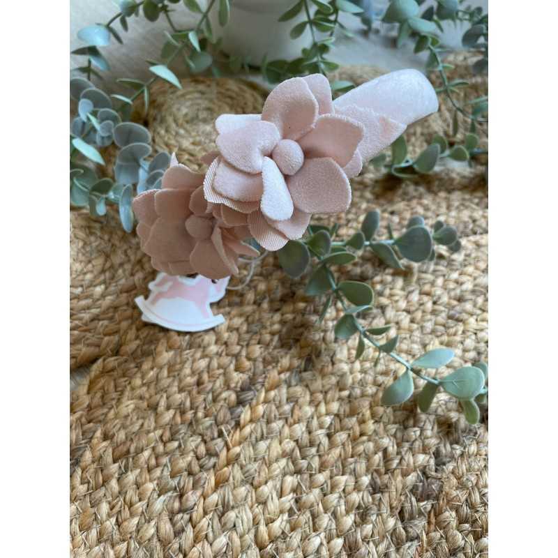 Frontino bimba in velluto, con fiorellini tono su tono.