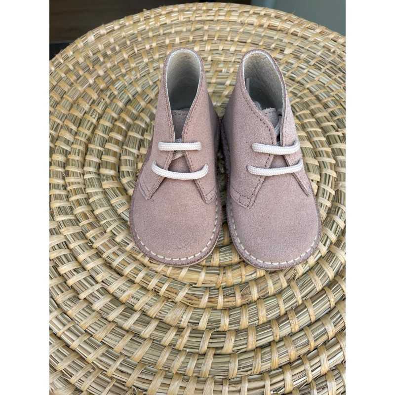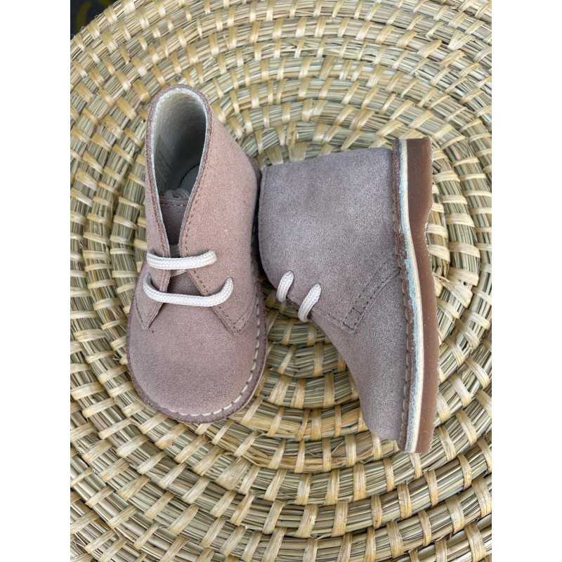 Polacchine modello Clark in camoscio con lacci e suola antiscivolo, plantare anatomico in pelle.