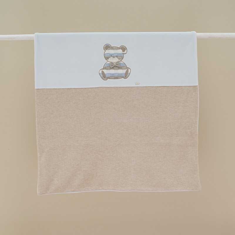 Scopri la nostra elegante coperta neonato in pura lana, con un dolce orsetto in rilievo. Perfetta per la culla e il carrozzino, offre comfort e calore ideali per autunno e inverno, garantendo un tocco di stile unico al tuo piccolo.