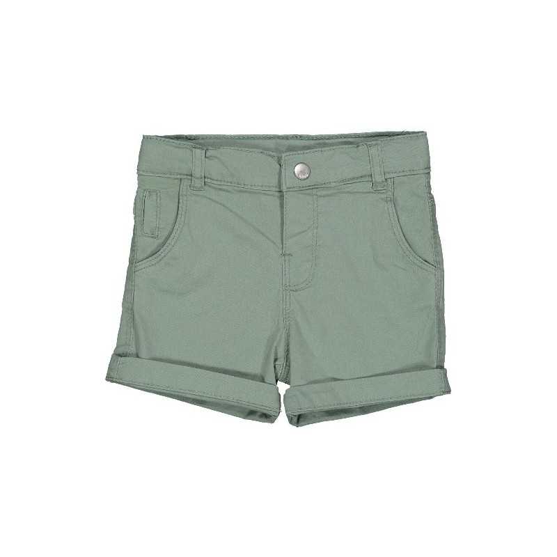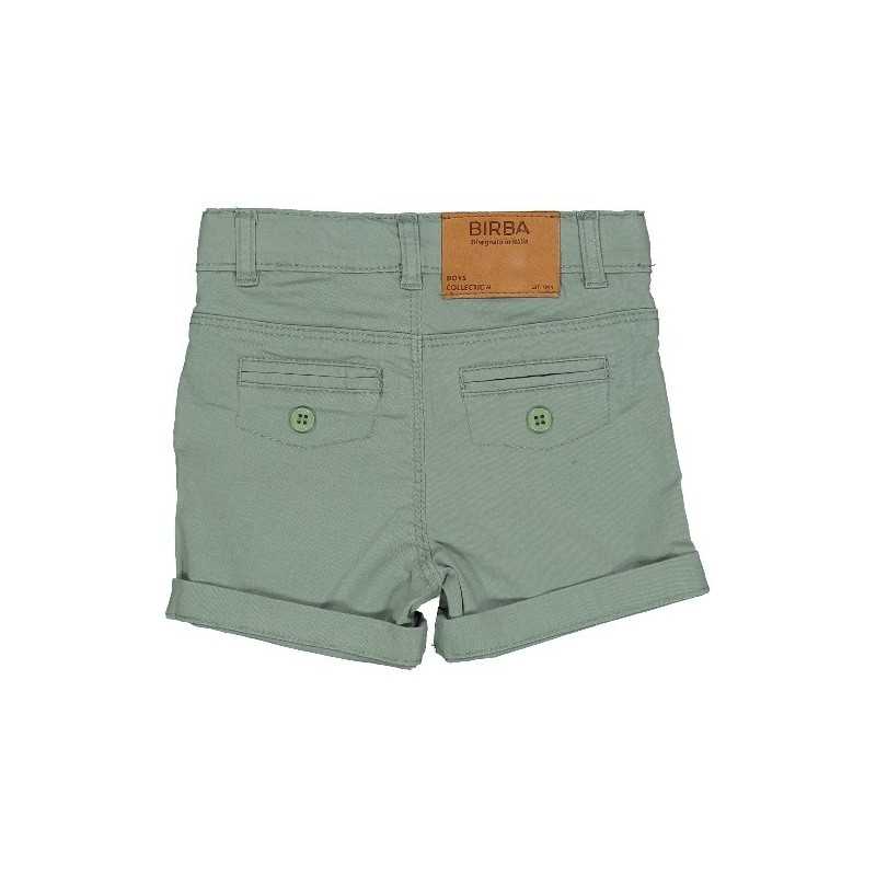 Bermuda bimbo in puro cotone con tasche a filo anteriori e tasche a scomparsa posteriori, vita regolabile e piega sul fondo.