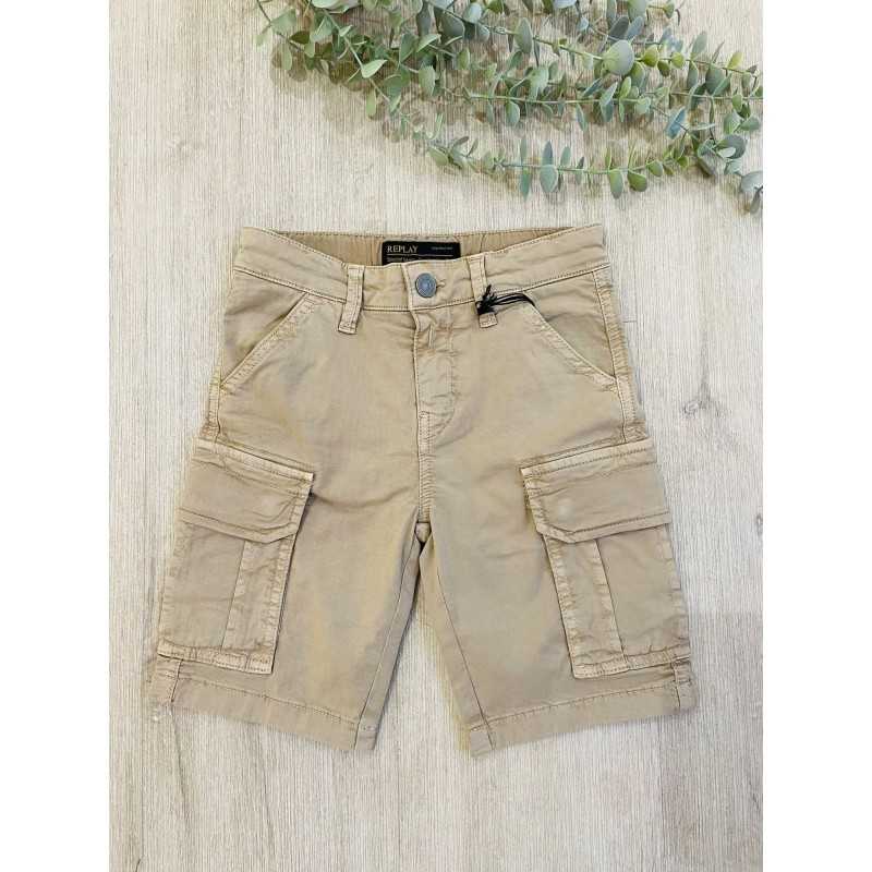 Bermuda cargo bimbo in cotone, con tasconi laterali e tasche a filo, cinto regolabile.