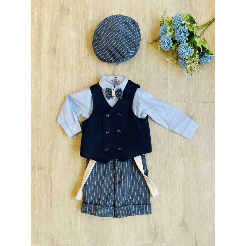 Coppola bimbo in caldo cotone, tessuto gessato effetto denim.