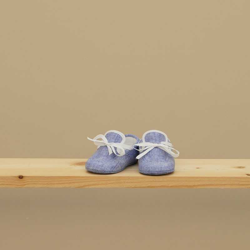 Scarpette neonato in misto lino con nastrino.